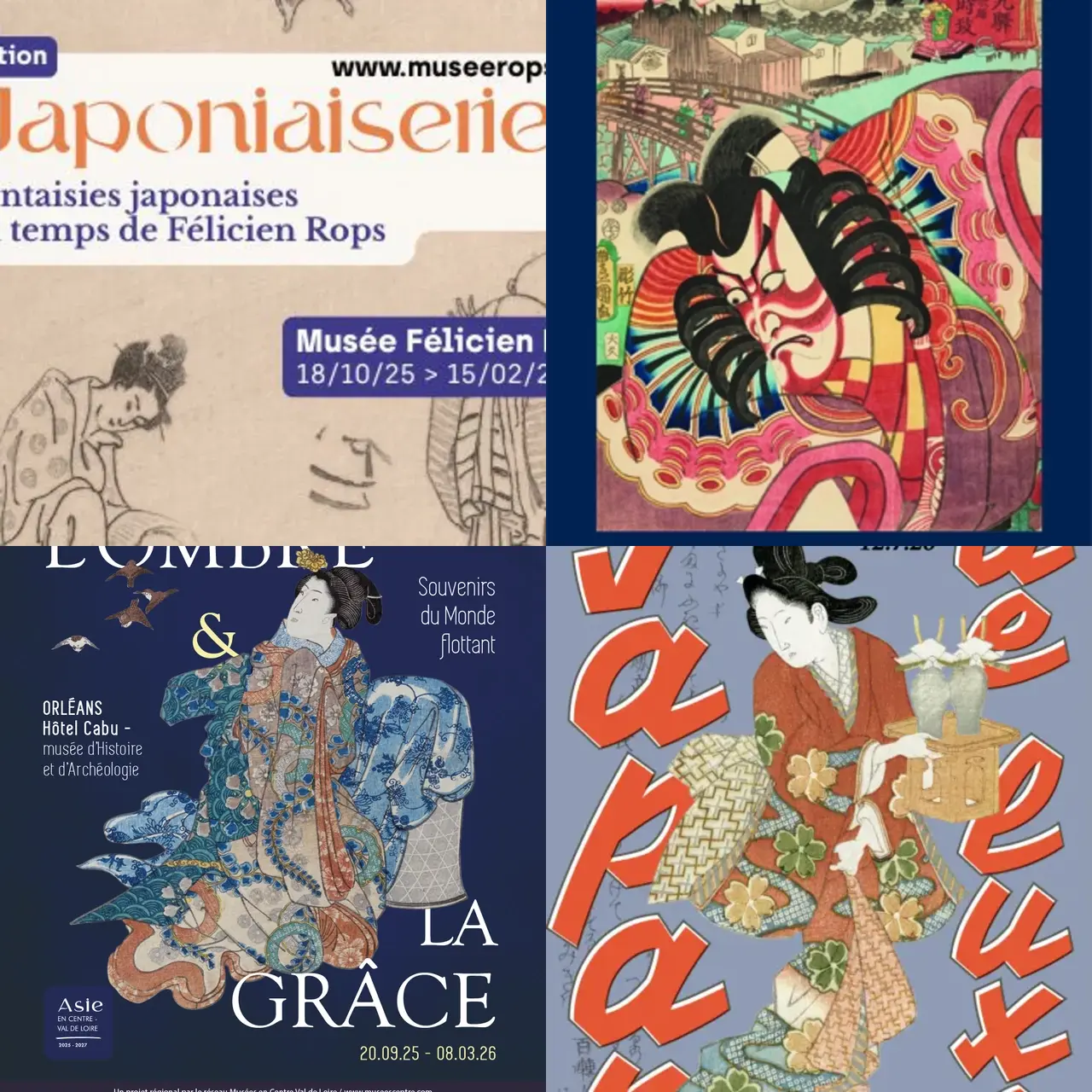 ExpoJaponiaiseries. Japanese fantasies in the time of Félicien Rops at Musée Félicien Rops in Namur, Belgium. This exhibition explores the profound impact of Japanese art on the work of Félicien Rops and his contemporaries.ExpoKunisada et le monde du théatre Kabuki at Musée du Dessin et de l’Estampe originale in Gravelines, France. Explore the world of Kabuki theater through the woodblock prints of Utagawa Kunisada.ExpoL’Ombre et la Grâce. Souvenirs du Monde flottant à l’Hôtel Cabu at Hôtel Cabu in Orléans, France. Delve into the delicate and evocative world of Japanese ukiyo-e prints.ExpoJapan de luxe – The Art of the Surimono Prints at Museum Rietberg in Zürich, Switzerland. Discover the art of surimono, a type of Japanese woodblock print that was privately commissioned for special occasions.